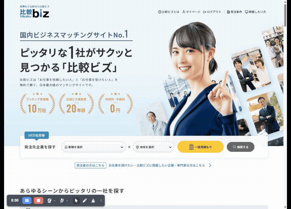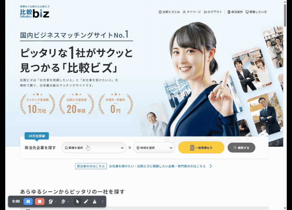 比較ビズでは、条件を入力するだけで複数の企業に同時に問い合わせできる一括見積もり機能を提供しています。効率的に見積もりや提案を受けるために、ぜひご活用ください。