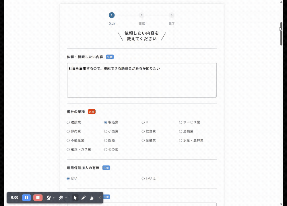 180の業界・業種と47都道府県を選択し、見積もりフォームを開きます。